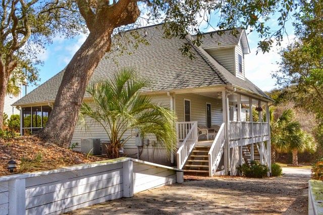 Three bedroom, 2 ½ bath home in Indian Beach on a nice lot, tucked away beneath the trees. This home features high ceilings, a 1st floor master bedroom, gas fireplace in the great room, hardwood and tile flooring, new carpet in upstairs, Whirlpool tub in the master bath, screened in porch with a hot tub that does convey, back deck, front porch, double car garage and a large recreation room with an additional half bath and 428 square feet that is not included in overall square footage.