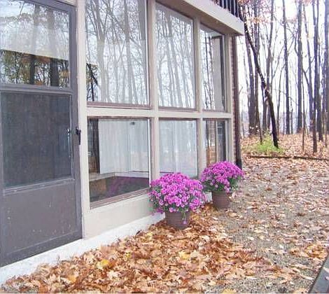 ONE OWNER condo with walkout sunroom and private graveled area for relaxing or grilling in pet friendly Bluffs. Enjoy gorgeous year around views in this wooded cabin setting. Real brick wall fireplace w/windows. Efficient kitchen w/new stainless appliances and gleaming wood cabinets. Eating area, peninsula bar and formal dining room. Master suite w/dual sinks, private sunroom and walk in closet. Guest bedroom w/2 closets. Library space is perfect for office area. Fresh neutral new paint and ...