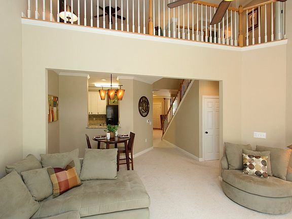 Desirable Heritage Pines - 55+ Community. Open and welcoming floorplan. Beautiful engineered hardwoods. Family room with vaulted ceiling and gas fireplace. Kitchen features granite counters and tile backsplash. Breakfast area opened to the Family room. Master bedroom with tray ceiling and walk-in closet with custom shelves. Utility room with sink. Second level with two bedroom, loft and full bath. Community features clubhouse w/scheduled activities, heated pool, tennis and more. Move-in ready! Must see!!
