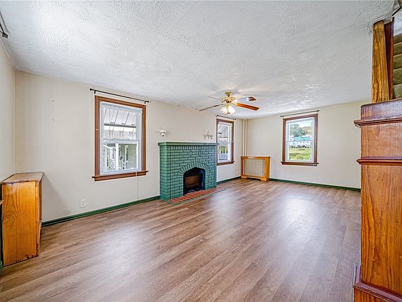 This charming Cape Cod home has it all! Outside you will find a well maintained yard, covered side porch for relaxing, and ample driveway space with a 2 car carport. Moving inside, you will find a cozy living room with a gas fireplace, dining area with built-in corner cupboard, updated kitchen with island and new vinyl flooring throughout entire main level. Two bedrooms with closets and wall to wall carpet are located on the second level. A full bath completes the second level. The walk-out basement features high ceilings, utility sink and w/d hook-ups. No water issues! Ceiling fans throughout.
