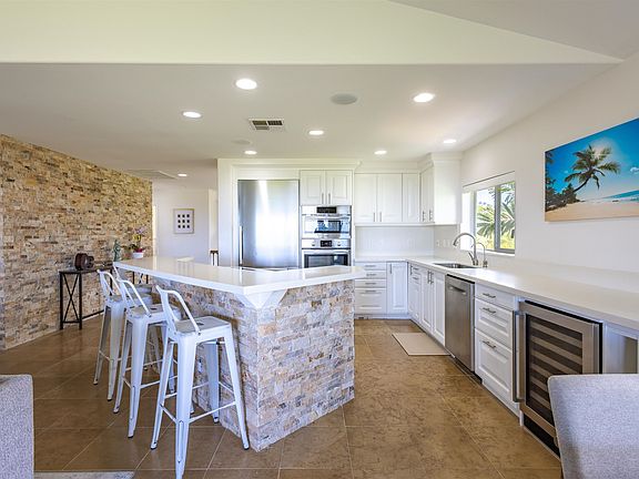 Easy to show. Vintage Residence 4 is a fully remodeled free standing luxury home located within the Kaanapali Resort Community. Residence 4 is the highest quality and most private Vintage Residence ever offered. The home is secured behind the Gates of The Vintage and perched above the 10th tee box of The Kaanapali Kai Golf Course. Situated southwest the view perspective overlooks the Kaanapali Resort with year-round sunsets, seasonal whaler watching and Pacific Ocean and outer island panoramas in the backdrop. The open and bright kitchen features custom everything with built in appliances, including Miele and Bosch, a large 6-seat bar and a wine cooler. The living room features vaulted ceilings, stunning West Maui Mountain and ocean views as well as a large covered outdoor deck. The master bedroom features a double door entry with a walk in closet and private, covered ocean view deck. The custom master bathroom is complete with floor to ceiling Spanish porcelain tile, free standing jet bathtub, custom floating vanity and curb-less 3-head shower. The two guest bedrooms and full guest bathroom are downstairs along with the laundry room, closets, garage and front entry. Each of the guest bedrooms offer large private covered decks. Over 3,000sqft under roof. The 2022 remodel took nearly a year to complete and includes a brand-new Bosch central air conditioning and central vacuum system in addition to a fully finished garage. Residence 4 is fitted with Hunter Douglas window treatment, matching Kohler fixtures throughout and complete indoor and outdoor state of the art sound system in every room, including the garage. The grounds and entry are meticulously maintained and have been enhanced to the fullest including lush landscaping with flowers and privacy hedges, making for a tranquil outdoor setting. The Vintage is a short golf cart ride to world-famous Kaanapali Beach and Whalers Village. Community amenities include private pool, hot tub, barbecues, full kitchen, and fitness center. The Vintage association offers hassle-free homeownership and maintains landscaping, pool, spa and roads, along with exterior painting and roofing. This home can be purchased fully furnished, Jaguar not included. Listor is Owner.