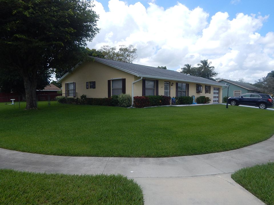 Spacious beautiful home, extra large corner lot, ceramic tiles allover,family room plus 16 X 16 Screened porch,new roof and new A/C in 2017, on City water and sewer plus a well for the sprinklers,shed, fruit trees,all fenced backyard,great backyard for BBQs,breakfast nook,located in desirable La Mancha with no HOA,split bedroom floor plan, close to jogging trail,dog park,etc. close to super markets,restaurants,Banks,bus stops, 25 minutes to beaches,10 minutes to Florida Turnpike and 15 minutes to Lion Country Safari.This one wont last !!!