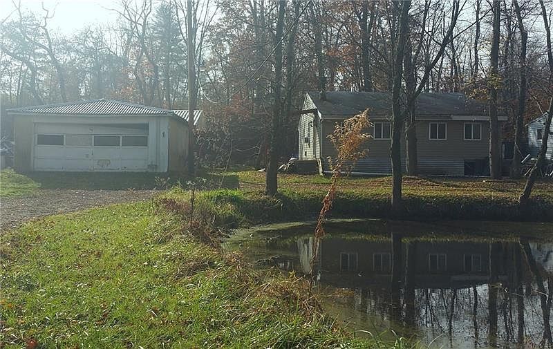 Nice cottage for first time home, weekend get away or rental property. With a little work this home would be really cute. Newer Water heater and softener. Electric updated in 2012, Roof 10yrs old (on home,) Furnace 7 yrs old. well a pump replaced. Two Car detached garage, picnic shelter, approx .50 Acre lot. View of Pond in front of property. This home needs finished with some drywall, kitchen bathrooms all plumbing in place. Kitchen cabinets and countertop in kitchen but not in place. Bathroom fixtures in property but not hooked up. Fishing, hunting & Golf close by. Minutes to 79 Zelienople and Cranberry.