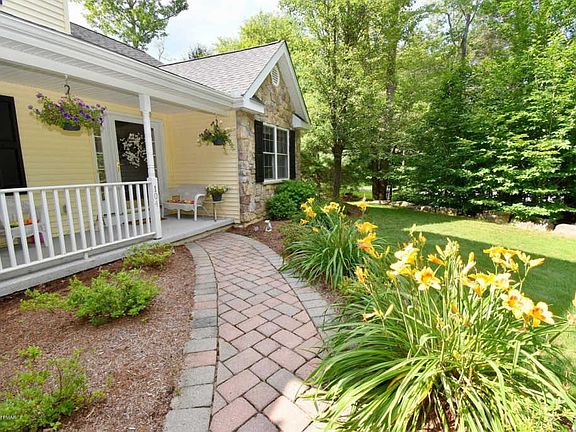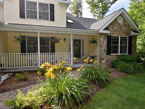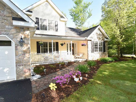 SPECTACULAR Home located on the 8th Green of Pocono Farms Golf Course featuring a Bright & Open Layout with Upgrades Around Every Corner. Hardwood Floors throughout Kitchen w/ Granite Counters & Center Island, Upgraded Cabinets w/Upper & Lower Lighting plus Breakfast Nook with Sliders to the Screened In Porch. Great Room w/ Cathedral Ceilings & Floor to Ceiling Stone Fireplace, Formal Dining Room, Half Bath & Den/Office with Hardwood Floors & Laundry Room. 1st Floor Master Bedroom Suite with Tiled Master Bath, Jetted Tub, Dual Vanity & Separate Shower. Upstairs Loft, 2 Spacious Bedrooms w/ Full Wall Closets & Full Bathroom. Attic Storage, 2 Car Garage w/ Full Finished Workshop, Beautiful Landscaping & Walking Distance to the Club House, Pool Area, Fitness Center, & Pro Shop!