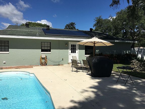 Home is located in a quiet and well-established neighborhood on a nice-sized lot. You will enjoy entertaining friends and family in your beautiful, large backyard with pool. Wonderful 3 bedroom 2 baths and a 23' X 11' bonus room. Split floor plan; living/dining room has vaulted ceilings and laminate floors and tile throughout. The house has solar panels which were purchased in 2017 with a 20-year warranty. Experience the joys of virtually no electric bill!
