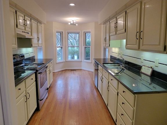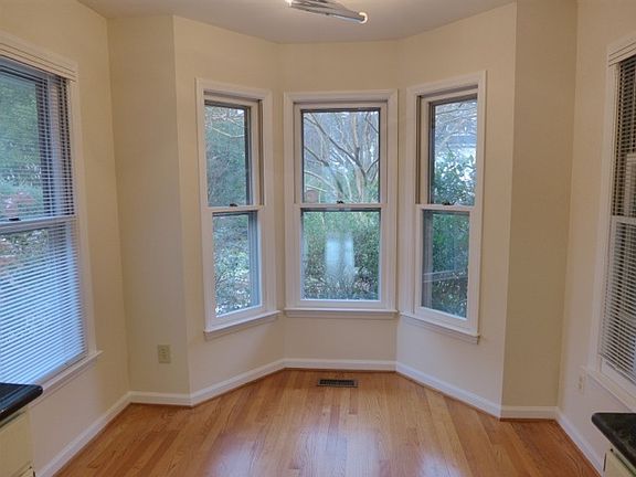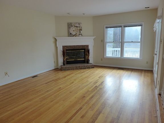LAKEFRONT! Fantastic one-level home w/ two car garage, with gorgeous, full views of Woodlake! Hardwoods through all living areas except tiled baths.Brick front, granite counters, and updated appliances, roof & water heater. Deep garage w/ workbench, storage. Amazing back deck runs full length of house! Lake views from MBR, BR2 & LR. Walking trails,pool. Close to shops, schools, RTP