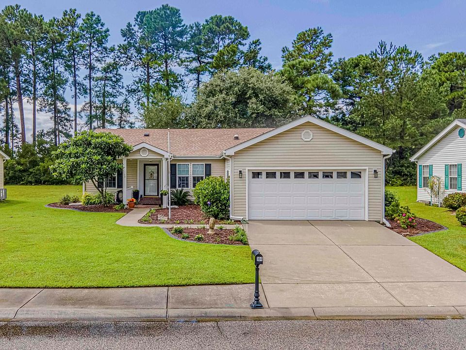Come enjoy a luxurious lifestyle with resort style amenities! Lakeside Crossing is a premier, gated, 55+ community. This property has great curb appeal with beautifully maintained landscaping. Upon entering through the foyer, you are greeted with an open floor plan perfect for entertaining with an easy flow from the living room, kitchen, and dining area. The kitchen boasts abundant cabinetry and counter space, pantry shelving nearby, tile flooring with decorative insert, and a breakfast bar. Two spacious bedrooms share a centrally located hall bathroom with an upgraded walk-in tub. One of the bedrooms has a Murphy bed with a built-in desk making this room ideal for crafts, an office, and guests. The impressive master suite features an ensuite bathroom with walk-in closet, dual sinks, and a large shower with seating. Off of the living room area, there is a Carolina room complete with a mini AC unit and a ceiling fan. Moving outside, the covered back porch allows you to enjoy the weather, scenery, and wildlife. The laundry room has cabinet storage and provides access to the garage. The main roof was replaced in 2019 and a rubber membrane roof was put on the back porch last year. Amenities include sidewalks, an indoor pool, outdoor pool, jacuzzi, massage room, large fitness center, paddle boats, tennis court, shuffleboard, fully stocked lakes with fishing pier (catch/release), sandy "beach" area, arts and crafts room, billiard parlor and lounge, library, catering kitchen, huge banquet area, on-site activity director and more. Monthly fee also includes lawn maintenance and trash pickup. This community is located between Conway and the Atlantic Ocean, providing you close proximity to all the attractions and amenities of Myrtle Beach, including fine dining, world-class, entertainment, ample shopping experiences along the Grand Strand, and Conway’s antique shops, local eateries, and the River Walk. Rest easy knowing you are only a short drive from medical centers, doctors’ offices, pharmacies, banks, post offices, and grocery stores. All information should be verified and approved by the buyer. Square footage is approximate and not guaranteed. The buyer is responsible for verification.