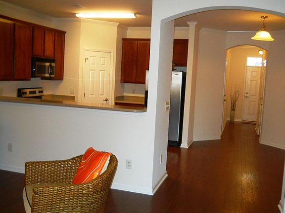 Fully refurbished townhome! New hardwoods thruout first level. New carpeting on stairs and upstairs. Essentially two Master suites on second floor. Laundry is on second floor. All appliances, except Washer & Dryer. Patio at rear with peeks of neighborhood pond.