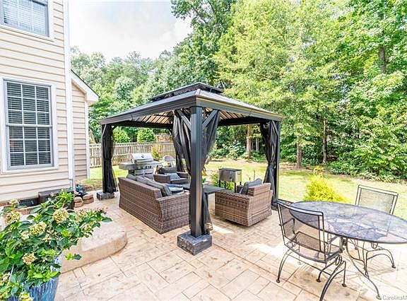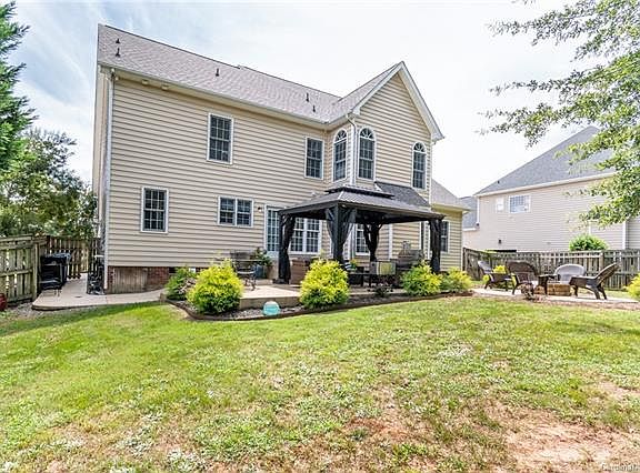 Beautiful spacious home in the Mooresville Graded School District. 4 bedrooms (2 have ensuite) with 3.5 bath. The master bedroom features a tray ceiling and a large walk in closet. The master bathroom has a garden tub, shower and dual sink with a vanity area. Guest bedroom is on main level with an ensuite bathroom. Main level has a great open concept flow and a formal dining room plus a breakfast area. The kitchen features a granite countertop and stainless appliances, gas cooktop and a wine refrigerator. Step out the back door onto the large back patio in the private backyard oasis and enjoy sitting under the gazebo or by the fire pit. Irrigation system is installed. There is a dedicated room office on main level, upper level features a space that can also be used as a second office, flex room, exercise room or craft room. There is also another huge bonus room upstairs. Roof is 3 yrs old. Only one block away are the amenities like outdoor pool, tennis court and playground.