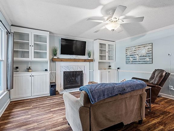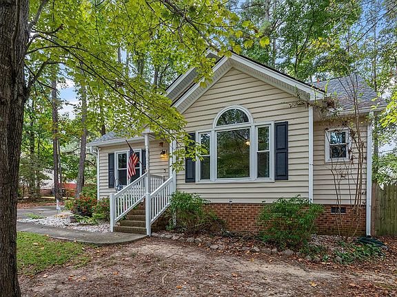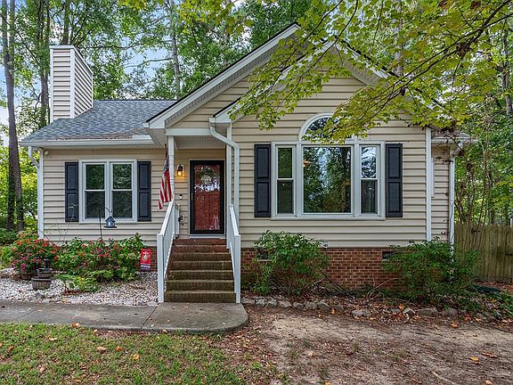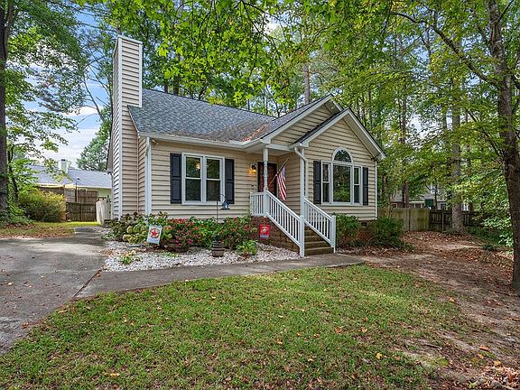 3 bedroom, 2 full bath ranch home nestled in the neighborhood of Carrington Woods. Fresh neutral interior paint and lovely white built-ins frame the marble fireplace in family room. Large and open kitchen with SS appliances. Primary bedroom is spacious with cathedral ceiling, walk-in closet and dual vanity in bathroom. Two secondary bedrooms are perfect as bedroom or office and each have large closets. Fenced in backyard with exterior storage. A new roof recently installed in 2021 and water heater in 2022. Easy and quick commute to Raleigh with nearby access to 540, shopping and restaurants nearby!