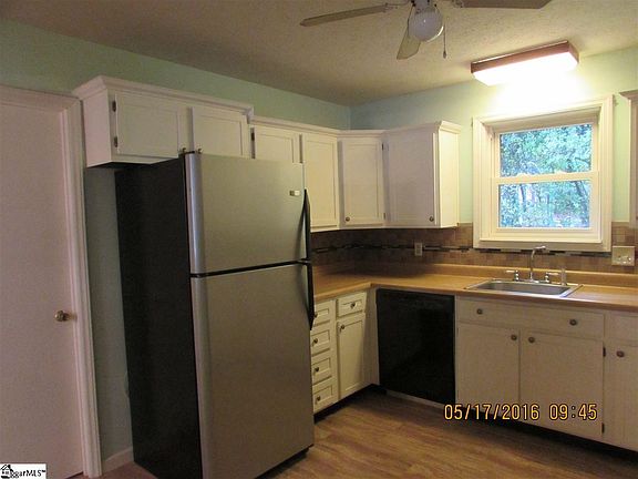 4br/2ba custom home in great location in Easley. Close to shopping and golf course. Large lot, partially fenced. New roof, only 2 months old, seller has made major improvements has added a large 2 car garage with a partially finished bonus above. All bedrooms are on the main level, with walk-in laundry room. New flooring, freshly painted. Kitchen has tile backsplash with all appliances that stay. Large deck on back and very private backyard, large shed for all of your garden needs. The Large green metal building behind home does not convey.