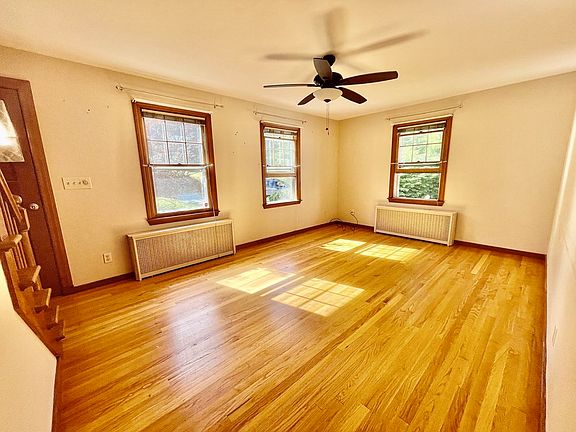 Situated on a corner, this 3 bedroom cape is one not to miss. The living room and dining room have hardwood floors and east facing windows, capturing the morning light. The kitchen has original features with some modern updates and good counter space. A three season porch is adjacent to the kitchen door, with windows on three sides, making for a great sunroom. The first floor bedroom is convenient to the full bathroom. The dining room could also provide an option for a fourth bedroom or home office. The second floor has two large bedrooms, both with wall to wall carpeting and ample closets. A spacious half bath is easily accessible from both bedrooms. The walkout basement with windows facing the west, with endless possibilities. The laundry and utility sink, along with a workshop area is great use of the basement space. There is a shed in the back yard to hold your lawn mower. With over a 1/2 acre of land, the tiered yard could be perfect for recreation or gardens.