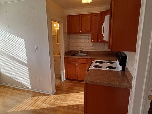 1 Bed / 1 Bath Upper Apartment in quiet residential neighborhood. Private entrance Newer kitchen (Flooring, cabinets, Counter-top, microwave) Carpet (bedroom & living room) 2 window a/c units w/remote (1 in living room, 1 in bedroom) Quiet residential area Storage area in basement One adult cat ok w pet deposit Water Included in rent Coin laundry in basement Rent $850. Security $850. Plus electric and gas.