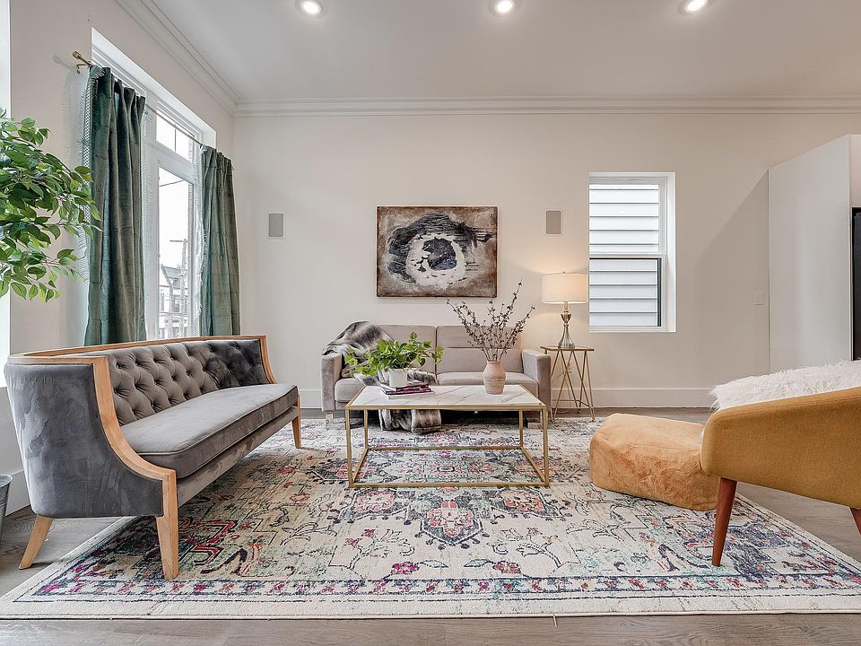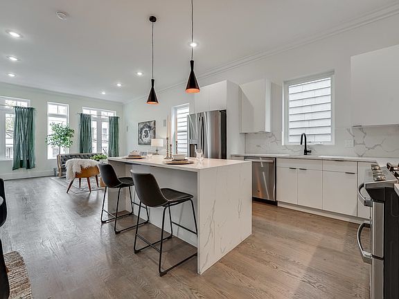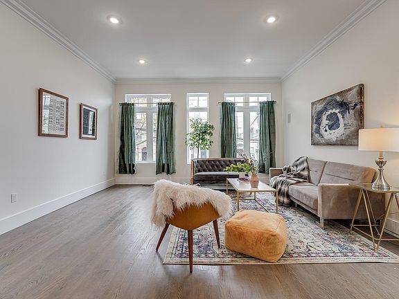 Magazine-worthy modern marvel is move-in ready in The Heights. Brand new construction by one of Jersey City’s top builders offers three bedrooms, wide layout giving extra square footage, backyard, plus garage parking for the ultimate urban appeal. Extra-high Pella windows shine loads of natural light through to the open concept floorplan finished with classic design and modern upgrades like fresh oak hardwood floors, crown molding, high ceilings, and smart home tech throughout. Downstairs duplex hosts bonus room with wet bar and half bath, plus double glass door access to your own fully finished private backyard. Contemporary eat-in kitchens offer clean white quartz waterfall island, counters and backsplash, plus seamless custom cabinetry and stainless GE appliances including wine fridge. Primary ensuites host glass doors to private balcony plus large built-out walk-in closets. Bathrooms feature elements like double vanity with smart mirrors, glass shower with multihead system or soaker tub for added convenience. Designated utility area features stacking Samsung washer and dryer. Modern brick building with 2-car non-tandem parking is less than one block from Summit Avenue, and walking distance to both Washington and Leonard Gordon Parks for ultimate urban escape. Jersey City Heights is known for its eclectic vibe, great community, excellent schools and accessibility to NYC and surrounding areas.