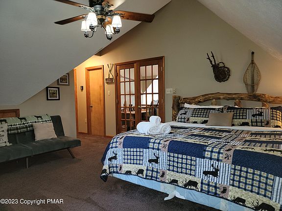 This beautiful 3 bed/2 bath CHALET is nestled in the short term rental friendly community Towamensing Trails! Showcasing an OPEN CONCEPT layout with rustic HARDWOOD wide plank floors, stone-faced FIREPLACE, VAULTED CEILINGS, & SPLIT UNIT AC, this home gives all the Pocono feels w/ modern day comfort! The gourmet kitchen features GRANITE COUNTERTOPS! The spacious BONUS ROOM is perfect for a family room or billiards room! Sliders lead to a new HOT TUB just installed in the fall of 2022 on the REAR DECK! 2nd floor PRIMARY SUITE! Expansive FRONT DECK lets you enjoy the outdoors! Enjoy all Towamensing Trails has to offer - 190 acre lake, beach, outdoor pool, clubhouse w/ restaurant service, & more! Minutes to hiking, biking, rafting, Hickory Run State Park, & more! See today!