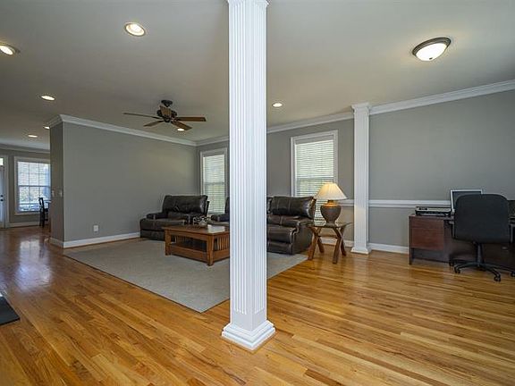 • Ceiling Fan(s), Recessed Lighting, High Ceilings, Built-Ins, Ceiling Fan, Entertainment Center, Floors-Hardwood, Molding, Bookcase, Bonus-Unfinished