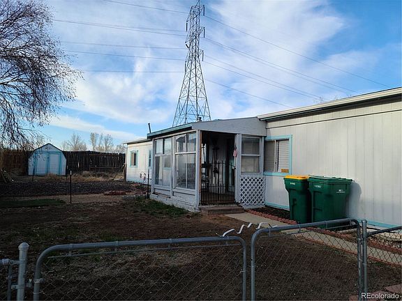 Super cute and affordable manufactured home on its on lot in Lochbuie - no park fees you own the land! This home built in 1978 features 2 bedrooms, 2 full baths, and study all on one level! Located across from park, and has a fenced yard and storage shed, Call me to tour! Buyer to verify square footage.
