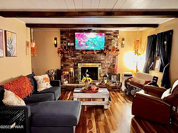 Upon entering this newly renovated cabin chalet, you'll be enveloped in a warm and inviting ambiance. Details can be found both inside and out, with an open floor plan featuring a charming brick fireplace that adds to the coziness. Opening the slider door leading to a sprawling wrap-around deck creates a perfect setting for entertaining. Venture upstairs to discover two inviting bedrooms and a convenient half bath. The primary bedroom boasts a personal coffee station and a generous balcony, where you can relax and savor your morning coffee while taking in the stunning seasonal lake view and tranquil sounds of nature. Just a short stroll to Hemlock Lake. This home is a dream come true for those who cherish a warm and inviting ambiance, as well as an appreciation for the great outdoors., Beds Description: 2+BED 2nd, Beds Description: 1Bed1st, Baths: 1 Bath Level 1, Baths: 1 Bath Level 2, Eating Area: Dining Area, Eating Area: Modern KT