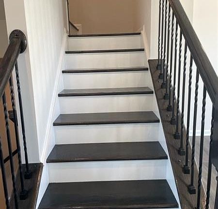 This beautiful townhome features 3 bedrooms, 3 baths, 5x18 deck, finished basement and 2-car garage. The main living level features an open and spacious living room and private alcove with powder room and coat closet. The gourmet kitchen includes a stainless steel GE appliances, quartz countertops, and a huge 10' kitchen island that opens to the dining area featuring a bank of windows. Upstairs is a luxurious owner's suite with a spacious bedroom, walk-in closet, and private luxury owner's bathroom. Two secondary bedrooms with ample closet space, laundry area, and hall bath complete the second floor. The finished rec room walks out to the green space. Luxury features include: upgraded vinyl plank flooring, 9ft ceilings on first and second floors, Nest thermostat, upgraded landscaping, and much more!