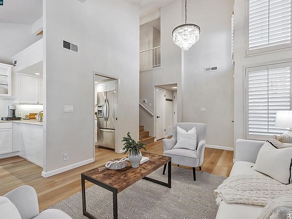 Must See! Nestled on a serene street without HOA dues! As you step into this beautiful duet, you're greeted by a lower level boasting inviting living and dining areas with vaulted ceilings, a cozy fireplace, and new floors. Remodel featuring custom cabinets that seamlessly extend into the dining area, complemented by quartz countertops and stainless steel appliances. On the lower level you will find A half bath and direct access to the two-car attached garage, complete with built-in cabinets. Upstairs, two spacious bedrooms each with its own updated bathroom, including the primary bedroom with vaulted ceilings and ample closet space.Step outside to your private backyard oasis, accessible from the lower level, where you'll find peace and tranquility with no rear neighbors, a relaxing deck, and new fencing. Perfectly situated for commuters, this ideal location offers easy access to Hwy 4, Hwy 680, and several BART stations. Plus, you're just minutes away from shopping at Sun Valley Mall, restaurants, K-12 schools, walking trails, Hidden Lakes Park and DVC.