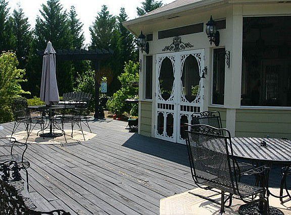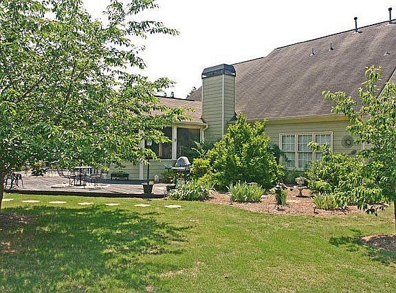 Incredible stone accent 4BR/2.5BA; Sprawling decks w/swing overlook beautiful level grassy lawn w/blooms galore! Bayed screen porch w/beadboard wainscoting ceiling! Vaulted greatrm w/ marble fplc; Two story tile foyer w/open staircase arched doorways to trey dining rm w/picture mold wainsocting bayed living/music rm; Tile kitchen w/solid surface counters, tile backsplash breakfast room w/double french door to porch; Main level master suite offers tile bath corner whirlpool tub; spacious secondary bedrms! Elegant open floorplan is ideal for entertaining!