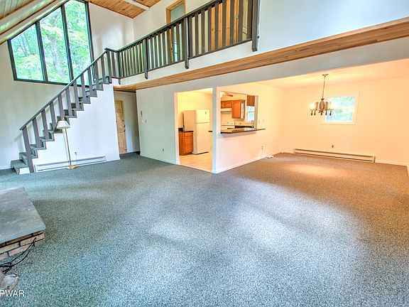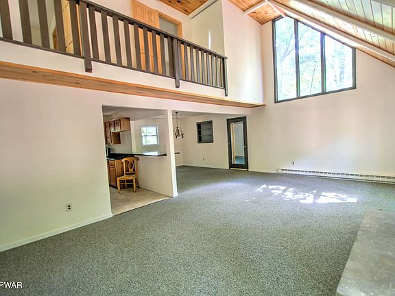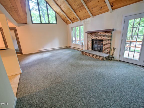Great location! 3 Bedroom, 2 Bath Home in Tanglwood Lakes features an open floor plan - large living room with cathedral T&G ceilings & wood burning fireplace. Newly renovated kitchen, bedroom & full bath. 2nd floor provides plenty of privacy with 2 bedrooms and a full bath. Looking to entertain? Head to the finished lower level w/a bar, pellet/wood stove and family room! Beautiful wrap around deck, storage shed. The following items are very recent or relatively new: windows, doors, carpet, most baseboard heaters, washer/dryer, dishwasher, microwave, stove, exterior painting & shed floor. Walk to Paupack Hills Golf Course & Country Club. Lake rights to Lake Wallenpaupack.