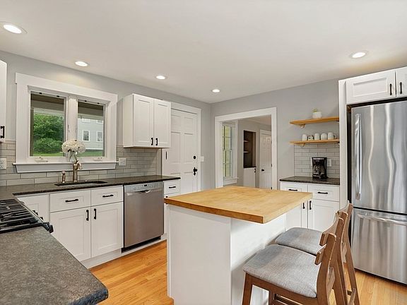Welcome to this beautiful and completely renovated Antique Farmhouse with Fort Pond Brook Reservoir and scenic views right in your backyard! Inside you'll be greeted by a bright and spacious layout on the main level, with a stylish and modern kitchen, stainless steel appliances, recessed lighting, a gas stove, an island with seating, a formal dining room, living room, a full bath and a first floor bedroom. Head upstairs to find 2 more generously sized bedrooms, and a full bathroom where the washer and dryer hookup are, and an amazing oversized tiled shower. Outside there is a 2 car attached garage, and a large deck perfect for relaxing or entertaining! Convenient location, close to public transportation, highway access, shopping, dining, and so much more!