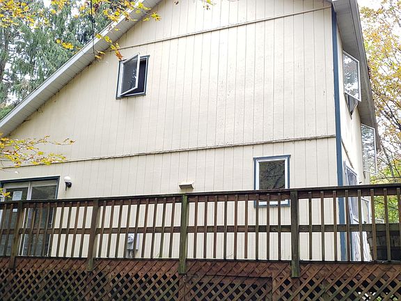 Once loved home awaits new owners! This contemporary saltbox with large porch is beautifully set on a one-acre lot in the Al's Acre's development. Inside, sunlight streams in through the large casement windows and bright skylights. The galley-kitchen with walnut cabinetry opens kitchen bar and dining area. The brick fireplace serves as the perfect focal point for the living/dining area. With closet space, wall to wall carpeting and appliances all included - this is a great opportunity with lake right and short walk to Lake Wallenpaupack river. Listed for only $159,900.00!
