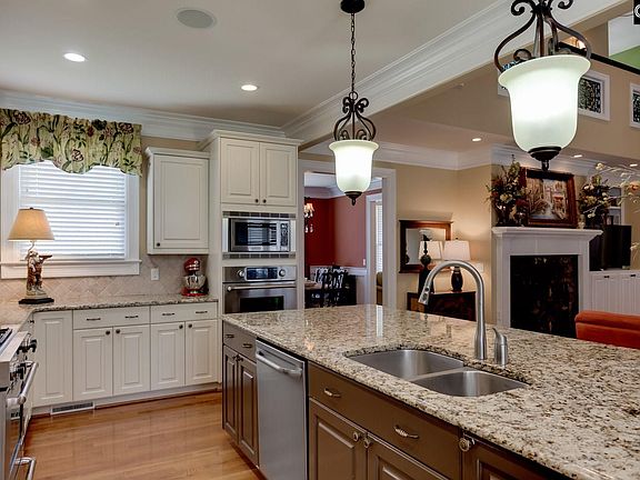 - Kitchen: Bar, Eat In, Pantry, Island, Floors-Hardwood, Backsplash-Tiled, Cabinets-Painted, Backsplash-Granite