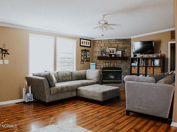 Beautiful manufactured home on a full 1 acre lot in beautiful Holly Ridge!! This home is very close in proximity to Stone Bay and is a short drive to beaches, and Onslow County schools. The home has been well maintained and features a cozy fireplace in the living room. Upgraded flooring throughout including the master bedroom. The home is complete with a large kitchen/dining space, two spacious guest bedrooms, a guest bath, a master bed and bath. This house will go fast!