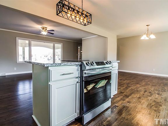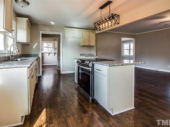 Gorgeous Renovated Home features New Roof, New Windows, New water heater, Hardwood floors, Crown molding, chair rail, new cabinetry through the entire house. Kitchen w/granite counters, Samsung bluetooth voice activated range oven. SS Appl. soft close cabinets, brushed nickel fixtures, desk area. New doors hardware, amazing baths with ceramic floors, white subway tiles, granite, listello tiles. Located off US 70, one minute from Clayton. Spacious fenced in backyard with fruit trees and mature landscaping.