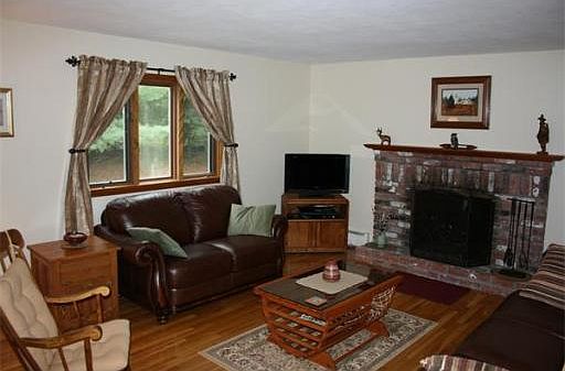 Set back from street on a beautiful one acre private yard in Sterling. Pride of ownership is apparent in this well maintained Cape. This home features gleaming hardwood floors in all the bedrooms, dining room, living room and office. Enjoy the fireplace in the warm, welcoming living room. Sliding doors out to a heated sunroom off the back of the house, perfect for relaxing enjoying all 4 seasons! A one car detached garage for your vehicle PLUS a bonus one car garage and shed in the backyard for hobbies or storage. This owner has put on a new roof, updated kitchen, beautiful new Pella doors in the dining room and updated full bath upstairs. The yard has open areas for entertaining and playing but is very wooded for privacy. This home is move in ready!