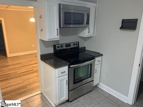 Charming 3 BR, 2.5 BA in downtown Laurens. This home showcases many updates over the years including flooring, bathrooms, kitchen, and windows. Be sure to note the coffered ceiling in the dining room. The primary suite is on the first floor. Full baths have modern shower tile, plus the primary bath has a clawfoot tub. A covered front porch, metal roof, outbuilding, and stone foundation are additional features!