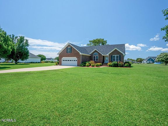 Well maintained brick home in Camden County's Bartlett's Landing water access community. Come enjoy the neighborhood boat ramp and community pier area for access to the Pasquotank River. Imagine jumping in your boat, on your paddleboard, or kayak and enjoying the summer fun of the river. This home has a nice flow with fresh paint, cathedral ceiling in the living area, gas logs, large sunroom, and mostly new flooring. Recent improvements include a one-year-old 40-year architectural roof as well as a one-and-a-half-year-old heat pump. The owner's suite has two closets, dual sinks, jetted soaking tub, and new flooring. The kitchen features a new stainless-steel range, dishwasher, and microwave, and a nearly new French door refrigerator. Come enjoy peaceful Camden living at 104 Marla's Way.