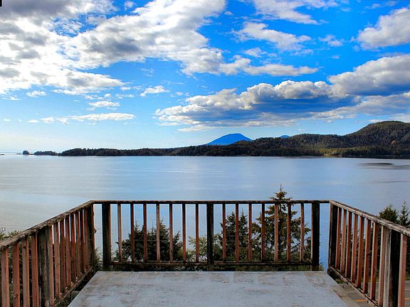 Uniquely Custom Single Family with Unobstructed, Panoramic Ocean, Mountain & Territorial Views. This '98 built Single Family Home is truly one-of-a-kind with immense living space, composed of 5 one half stories, including 4 bedrooms, 3 baths, a family room, rec room and more. The northwest exterior staircase takes you to the wrap-a-round covered porch accessing the 1st floor living room, kitchen, dining area, laundry room and attached greenhouse. Continuing up to the 2nd floor, find one full bath and 3 bedrooms, 1 with an ensuite. Surrounded by 3 walls of windows, the family room located on the 3rd floor showcases a convenient wet bar along with expansive ocean views. Continuing up, take the opportunity to make the entire 4th floor a master suite, containing a large bedroom and ensuite featuring a claw foot tub, custom standing shower, steam room, and private covered balcony. Up the circular stairwell, find a sunroom sitting area providing access to a breathtaking, panoramic, view walk-out tower that you won't find anywhere else in Sitka. Add extra living space by completing the unfinished shop/garage, bath, and office. This memorable dwelling sits atop a C-2 Commercially Zoned lot, with east retaining rock wall, storage sheds, an exterior hot & cold water faucet, room to landscape & plenty of space for extra vehicles.