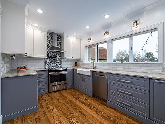 Pristine, completely remodeled home in the heart of Bridgewater! 2,000+ finished square feet on main level, which features spacious central corridor through the home that encompasses the foyer, home office with built-in desk cabinetry, and 10x14 dining area. Also on the main level: Gorgeous KITCHEN with stainless appliances, range hood, pot filler, granite counters, tile backsplash, pantry closet, 21x22 GREAT ROOM (recent addition) with windows on 2 sides and 11-foot vaulted ceiling, three bedroom and two full baths, including lovely OWNERS SUITE with 12x15 bedroom, heated tile floors, tiled shower with glass enclosure, marble vanity top, separate lavatory, walk-in closet with extensive organizer system. Hall bath has abundant tiling: tiled floor, tiled walls (all the way to ceiling), tiled surround for large tub/shower. Hardwood floors throughout most of the main level. Basement includes 4th bedroom and 3rd full bath. The rest of the basement is a large open area (not counted in finished square footage) great for exercise and/or play area (or future expansion). Single garage, large level backyard with pavered patio and fish pond!