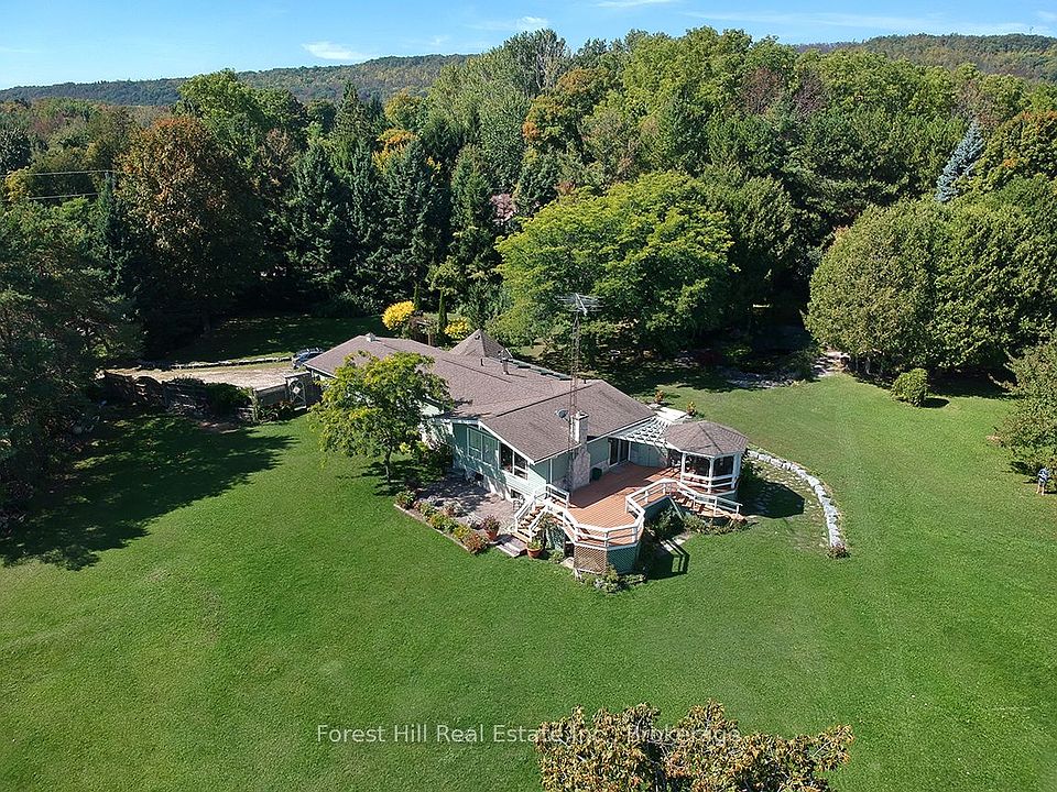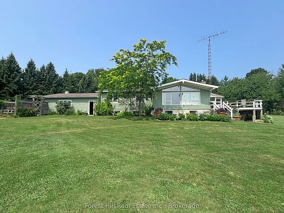 Scenic 2-Acre Retreat Overlooking Georgian Bay. Walk to the Beach. Discover the perfect balance of privacy, natural beauty, and location with this charming Viceroy raised bungalow set on a stunning park-like 2-acre corner lot, just a short walk from Kiowana Beach. Surrounded by mature trees and open green space, the property offers a rare sense of peace and plenty of room to make your own. Step onto the large entertaining deck with gazebo and take in the serene setting beautifully landscaped grounds with lush gardens, a tranquil UV-filtered pond, and space to roam. Inside, the home features 3+1 bedrooms, 2 bathrooms, and solid oak flooring throughout the main level. Enjoy a cozy gas fireplace upstairs, and a WETT-certified wood stove on the lower level for added comfort and charm. The sunroom, with new Velux skylights, provides a bright, peaceful space to relax or grow year-round. Additional features include central air, an upgraded UV water system, and an ideal location just minutes from the shops, restaurants, hospital, schools, and marina of Meaford; a vibrant, four-season town with skiing, hiking, boating, and endless outdoor activities. Outdoor enthusiasts will appreciate the oversized double garage with 200-amp service, two versatile storage sheds, and abundant space for gardening, hobbies, and recreation. Whether you're looking for a full-time residence, a weekend retreat, or an investment in Georgian Bay living, this property offers a rare combination of natural beauty, space, and walkable shoreline access.