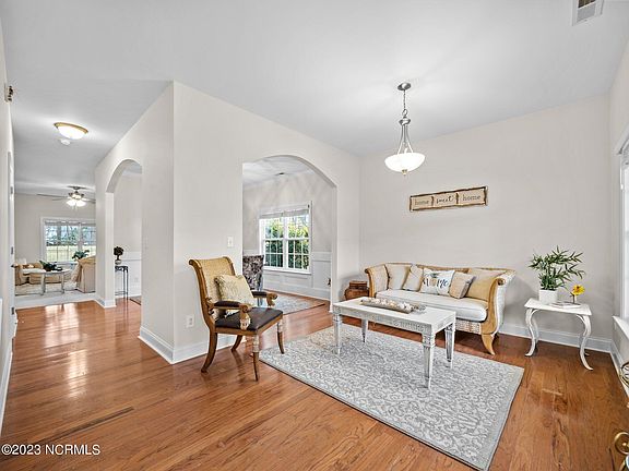 REFRESHED AND REJUVENATED! If plenty of space and upgrades is what you desire, then look no further! Featuring 5 bedrooms, 2.5 bathrooms, a formal dining room, a study and so much more! Updates include: FRESH PAINT THROUGHOUT, BRAND NEW CARPET, NEW LIGHT FIXTURES, A RECENTLY SERVICED HVAC, REFINISHED FLOORING, DELIGHTFUL FRESH LANDSCAPING AND BRAND NEW APPLIANCES. You will love the spacious living room that showcases a cozy fireplace. The gourmet kitchen was built for function and flexibility boasting a large island, granite countertops and an oversized pantry. Enjoy brand new / upgraded LG appliances. The range comes equipped with an air fryer mode, while the refrigerator offers an exclusive ''craft ice'' feature, perfect for whiskey and scotch drinks. No need to purchase a washer and dryer, as those will stay with the home as well. All bedrooms are located upstairs. The master is spacious and encompasses a gigantic walk-in closet and a private ensuite complete with a dual vanity, soaking tub, and stand alone shower. The other 4 bedrooms are the perfect size. Relaxing will be a breeze on the screened-in porch, overlooking the privacy-fenced yard. This beautiful home is located on a quiet cul-de-sac in the highly sought after community of Williamsburg Plantations. Close to Camp Lejeune, schools and shopping. This one will go quick! Schedule your private showing today and be prepared to fall in love.