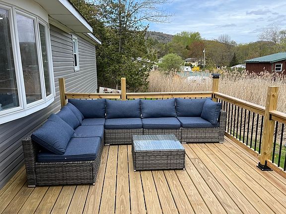 Charming, low maintenance one level living in the quaint town of West Rutland. Three bedrooms, one full bath and one half bath with laundry, open living room and dining area, all on one floor. Oh, so convenient mud room between living room and over-sized one car attached garage. French doors to new expansive deck offering relaxation & gorgeous mountain views. Updated kitchen that leads to delightful covered porch. In the full walkout basement you will find already apparent finishing potential to double your living space. Currently set up as a home gym, office, play room and family room, the possibilities are endless. You will not want to wait too long on this one.