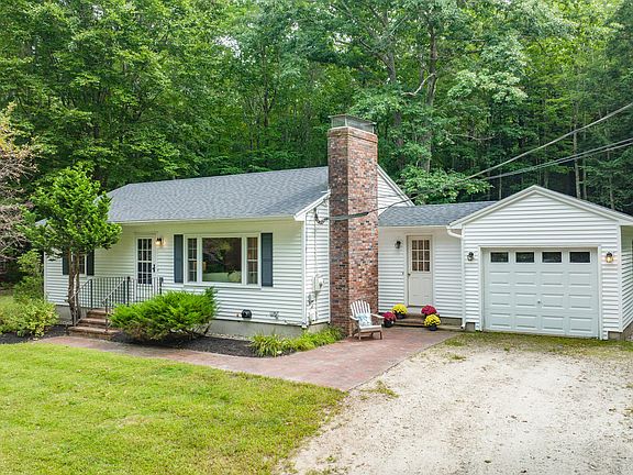 A serene and lovely property surrounded by over 2 acres of forest and a stone's throw from Pineland Farms where recreational opportunities abound! This wonderfully clean efficient single level home with a modern twist eagerly awaits its next owner. Well cared for and truly move-in ready, fresh aesthetic updates like hardwood flooring and new paint make the easy layout shine. Recent system investments include a new high efficiency propane furnace, a converted gas fireplace, water filtration system, and a new roof installed in 2020. Featuring a finished basement for the work-from-home lifestyle and an attached garage with direct access to the mudroom - a Maine requirement for country living. Move into this peaceful property in time to admire the best fall foliage!