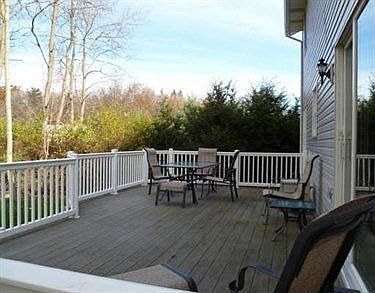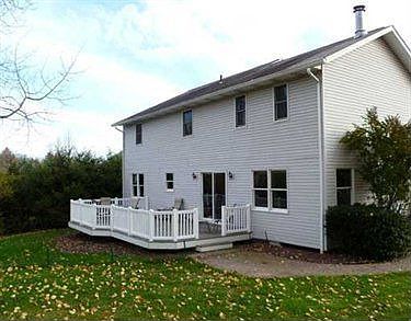 Privacy plus so much more for the price. Trex deck-sunlight flows thru- newer set up kitchen fully equipped- Large rooms-close to all. Very energy efficient. Even a big front porch too. Ruffed for 3rd bath-walk out basement- Cath. ceiling-master suite. Friendly, easy living home geared to sell quick. Home warranty.