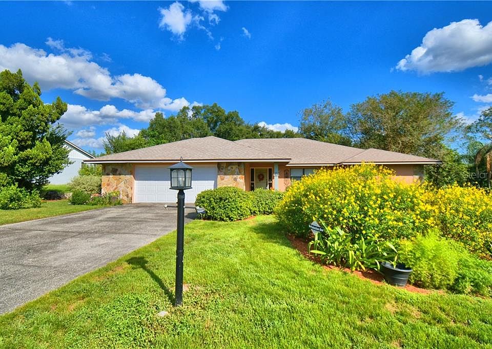 This lovely 3 Bedroom/2 Bath home is situated on a .34 acre lot with mature and beautiful landscaping. NO HOA! The home offers a great floor plan with an inviting foyer leading into a large living room complete with a gas/ wood-burning fireplace accented by beautiful natural stone. The kitchen is ideally situated between the living and formal dining rooms .....perfect for entertaining and family gatherings. Or relax in the spacious family room overlooking the back yard. This inviting space is accented with beautiful wood floors. The master bedroom offers a huge walk in closet along with a full en-suite bathroom that includes spacious lavatory cabinetry and updated step-in shower. The 3-way split floor plan offers privacy for the remaining bedrooms. Other great features include NEW roof 2019, A/C replaced in 2012, tankless gas water heater, new wood floors , well for irrigation, and updated bathrooms.. The kitchen offers ample cabinets, work space and gas range. Gas appliance option also extends to the dryer. This home is conveniently located to shopping, schools, hospital , medical, and central Florida Attractions with easy access to Chain of Lakes for fishing & water sports!. Don't miss out!!!!.