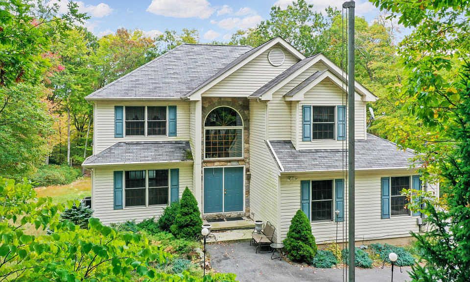 PRIVATE, MAGNIFICENT 4 BEDROOM COLONIAL W/ A FINISHED BASEMENT - COME HOME TO YOUR FAMILY'S DREAM HOME! Located inside a desirable gated lake community & recognized school district, this home is the perfect place for making memories that will last a lifetime. Inside a GRAND 2 story foyer w/ views through to the back of the house & nature. Glowing hardwood floors throughout! Spacious modern kitchen w/GRANITE & bright cabinets! Large eat-in kitchen opens to huge living room w/stone faced propane fireplace! Upstairs master ensuite, walk-in closet, & attached room for office! Three more huge bedrooms & full bathroom. Large finished, walk-out basement, half bath, & pellet stove is perfect for family room or guest suite. CENTRAL A/C! 2 CAR GARAGE! 2 sheds! See the 3D tour!