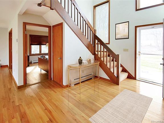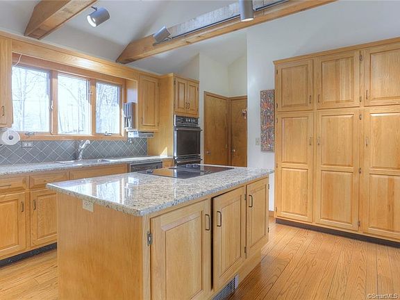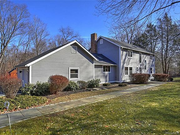 Golf course views! Located in lower Easton, across from H. Smith Richardson Golf Course, this open and bright 4 bedroom 2.5 bath Contemporary Colonial has an abundance of space. Gracious foyer leads you to the Living Room with floor to ceiling windows with an open flow. Beautiful oak hardwood floors throughout the home too! Stunning Eat in Kitchen with vaulted ceilings, skylight and sliders leading you to the over sized deck, perfect for outdoor entertaining. Formal Dining room, Family room with fireplace and office are all on the main floor. The second floor has a Master Bedroom with full updated bath as well as 3 spacious bedrooms and another full bath. Attached 2 car garage and private backyard with .94 acres close to the Merritt Parkway. Walking distance to hiking trails and snow shoeing. A must see!