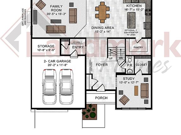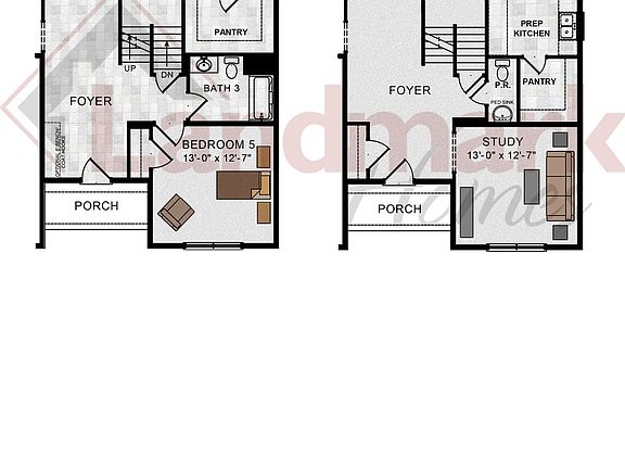 Two-story home with over 3,000 sq feet, 4 bedrooms and 2.5 baths, and a 2-car garage.. A 5th bedroom and 3rd full bathroom can be optionally built in place of the study on the first floor. A two-story great room shares an open plan with the dining area and kitchen. The 2nd floor includes a spacious loft area and laundry room. (Pricing may reflect limited-time savings/incentives. See Community Sales Manager for details.)
