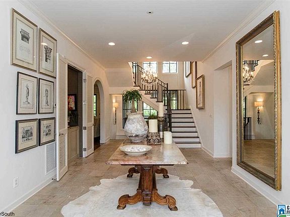 This exquisite two-story family home, newly constructed in 1989, is located in the Crestline neighborhood of Mountain Brook and has five bedrooms and five and a half bathrooms. It is perfectly situated in a private setting on a cul-de-sac on a beautifully landscaped lot. An impressive wide stairwell welcomes visitors to the covered front entry with antique French doors from France, arched windows, custom awnings, oversized lanterns, upper loggia, and a stone terrace with custom iron railings, all complementing the stucco façade. Overlooking the patio is a bluestone covered terrace, with two seating areas. Lovely master bedroom on the main with access to screened porch and his and her baths. Spacious family room and custom, high end kitchen! Large bedrooms upstairs, with updated bathrooms and large playroom. Elevator from lower level garage to main level for easy access. This home has charm and sophistication you have not seen! Call today for your private showing!
