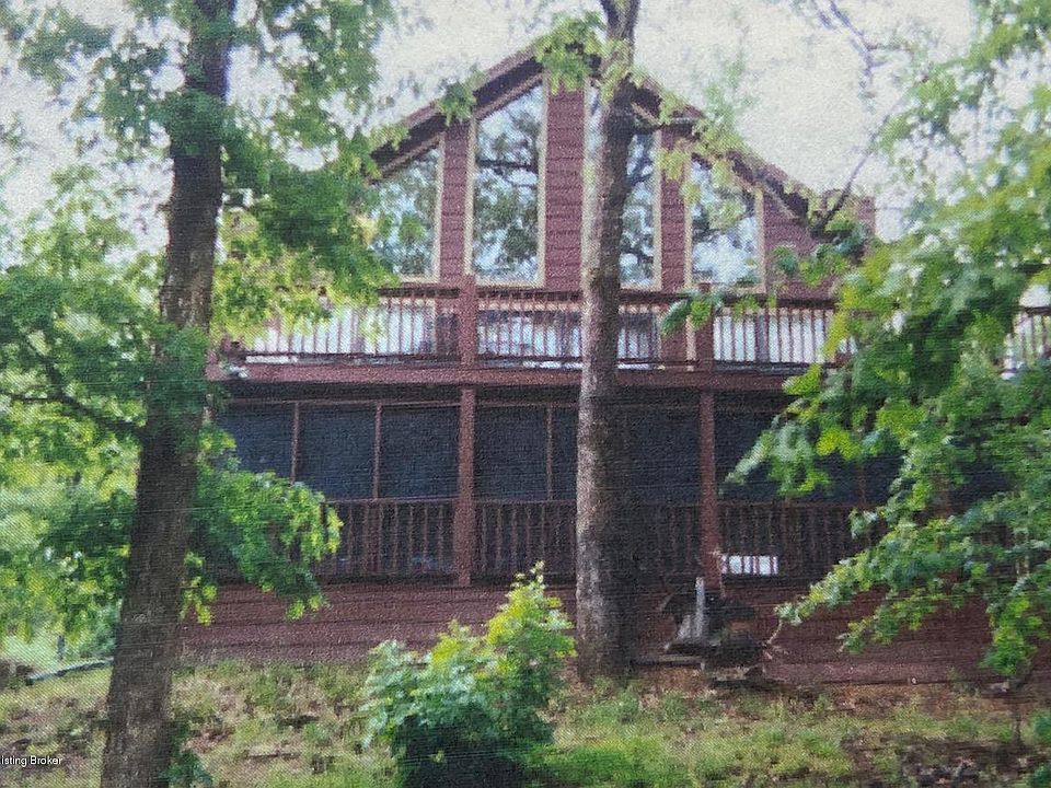 Lakefront Home on 3 lakefront lots 6,7,8, in Moutardier Shores on Nolin Lake. Lakefront lots with gentle slope and 2 boat dock to remain per COE. This Cedar Chalet has vaulted great room with stone gas fireplace with kitchen and two bedrooms and full bath on main level. The upstairs loft has its own full bath with a shower. The finished lower level has a bedroom with no window and a full bath. Large family room in basement has gas wall heat and room for lots of bunk beds. Furance and utility room in basement area. Seller will leave all appliances 2 refrigerators, dishwasher, microwave, stove and washer and dryer. 2 boat docks stay per COE.Home has parking with half circle driveway and attached storage area on home for your toys. HOA dues are $200 per lot per year.