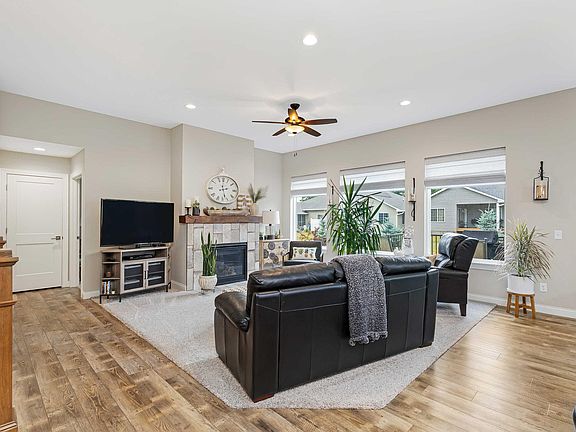 Fantastic practically new construction in Eldridge! Just a couple blocks from North Scott school. This house is only 4 years old and feels brand new. Pride of ownership shows in this ranch home. The main floor has an open floor plan with a gorgeous kitchen, large island, and informal dining overlooking the great room with a warm fireplace and huge daylight windows. Kitchen has ample counter space, tile backsplash and nice sized pantry for storage. Off the back is a lovely sunroom that walks onto a maintenance-free deck! Windows have custom shades that will stay. The main bedroom has a nice layout with a private bath, double vanity, and large walk-in closet. Great mudroom off of garage with lots of storage. A second bath and full bath round off the main level. Basement is ready to be finished with an egress window, plumbed for 3rd bath and living space. This home has zero-step entry, wide doors, and halls. Low monthly HOA covers snow removal and lawn care. Nothing to do but move in!
