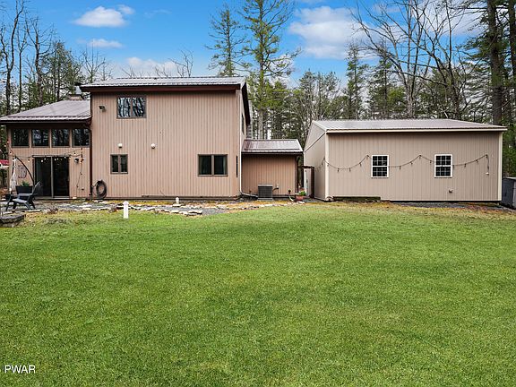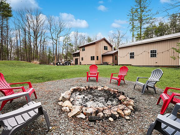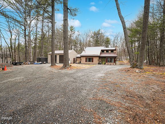 A UNIQUE SLICE OF PARADISE! Come see this BEAUTIFULLY UPDATED 3 BEDROOM 2 BATHROOM home in the desirable Pocono Mountain Woodland Lakes Community! This property boasts: TWO separate living rooms with lofty, high CATHEDRAL CEILINGS, large windows allow TONS OF NATURAL LIGHT, all new MODERN light fixtures and stylish CEILING FANS, TIMELESS STONE FIREPLACE that is wood-burning (Save on heating in the winter!) GORGEOUS HARDWOOD FLOORS in common areas, WALK-IN CLOSETS in ALL 3 BEDROOMS MASTER BEDROOM ON FIRST FLOOR with attached spare room (Perfect for an office!) SLEEK, CLEAN, and UPDATED BATHROOMS, an attic and ample closets. LOTS OF STORAGE SPACE! NOT TO MENTION: A HUGE 2 CAR GARAGE with EXTRA TALL DOORS. TONS OF POTENTIAL FOR: Parking work vehicles, utilizing as a workshop or hosting parties and family events! This property's large 1.22 acre plot is the perfect place for you to stretch your legs out and enjoy your incredible back yard with a STONE PATIO with CHARMING LIGHTING. And don't forget to take advantage of the STONE FIRE PIT! Perfect for hosting family and friends or just a relaxing night after a long day at work. On top of all this, you will enjoy tons community perks that Pocono Mountain Woodland Lakes has to offer you! Easy access to I-84 and just a short drive away from historic Milford Borough!