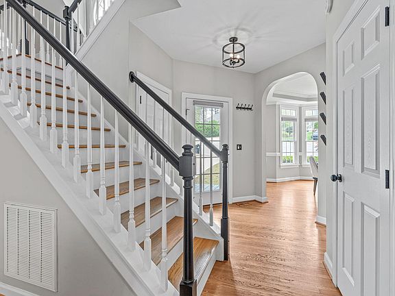 WELCOME HOME to this quintessential Charleston style home in the super desirable Apex, NC community of Scotts Mill! This 3 or 4 bed/3.5 bath home w/loft AND finished 3rd floor (which could be a 4th bedroom suite) makes this one extra special. Tucked away in the community, this home sits on a large cul-de-sac lot and backs to a generous wooded buffer that's just starting to POP with the arrival of Spring. Bay windows in both the Dining Room and Primary Bedroom add even more space! The Bonus Room/Office/Loft has it's own unique flight of stairs and the MOUNTED TV'S STAY - a sports lovers dream! The 3rd Floor is currently used as an entertainment room with a large movie screen, a ceiling mounted projector and awesome sound! The viewing couch stays! Some popcorn and the blackout curtains are all you need for a perfect movie night! There is a full bath up there along with walk-in attic storage! Outdoor spaces? YES! The screened porch will be a favorite, along with the wrap-around deck in the backyard. Out front we have a nice entry porch and a BONUS covered porch on the second floor, just perfect for a night-cap before bed or coffee in the morning! This one is the one you've been waiting for, but HURRY!
